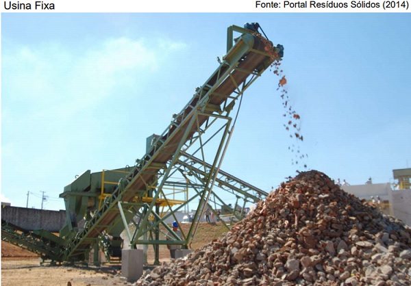 São basicamente três tipos de plantas para usinas de resíduos da construção civil: Plantas Móveis, Plantas Semimóveis e Plantas Fixas. A usina com Planta Móvel tem como característica a mobilização constante, ou seja, poder ser utilizada em qualquer espaço físico. Já as Plantas de Usina Semimóveis possuem facilidade de instalação, manuseio, rapidez e economia da montagem, sendo recomendadas em caso de empreendimentos de curto ou médio prazo. E por fim, as Plantas de Usina Fixas que são comumente utilizadas em empreendimentos de espaço físico definitiva.