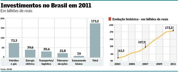 Para a Abdib, o desafio do Brasil é acelerar os investimentos. Números da entidade mostram que os investimentos públicos e privados em infraestrutura passaram de R$ 63,2 bilhões, em 2003, para R$ 173,2 bilhões, no ano passado. Mas ainda é pouco.