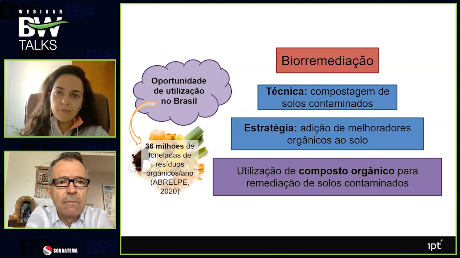 "É um potencial não explorado", pontuou Camila Camolesi Guimarães, pesquisadora na seção de Investigações, Riscos e Gerenciamento Ambiental do Instituto de Pesquisas Tecnológicas do Estado de São Paulo (IPT), durante o BW Talks Transformando Resíduos em Oportunidades: Uso de Composto Orgânico para a Remediação de Áreas Contaminadas, promovido no dia 21 de julho.