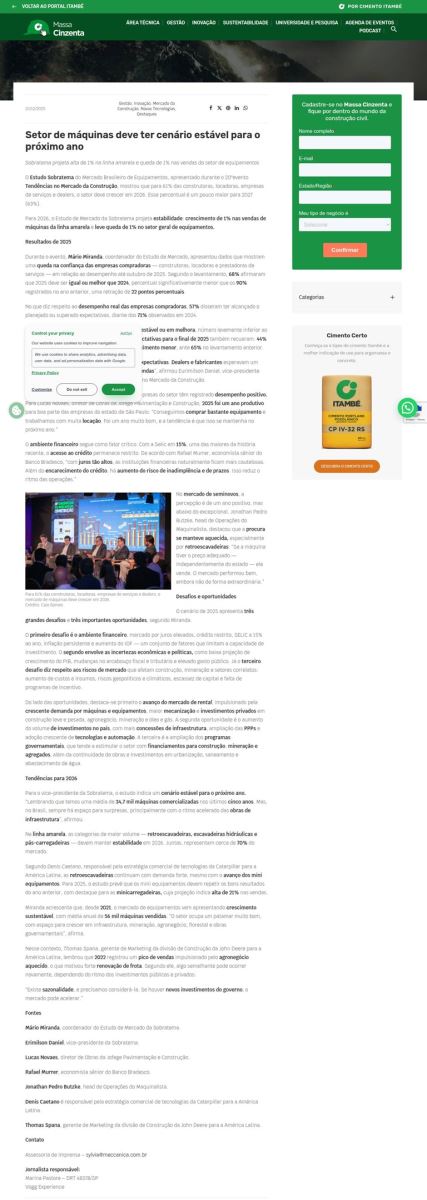 Massa Cinzenta - Setor de máquinas deve ter cenário estável para o próximo ano